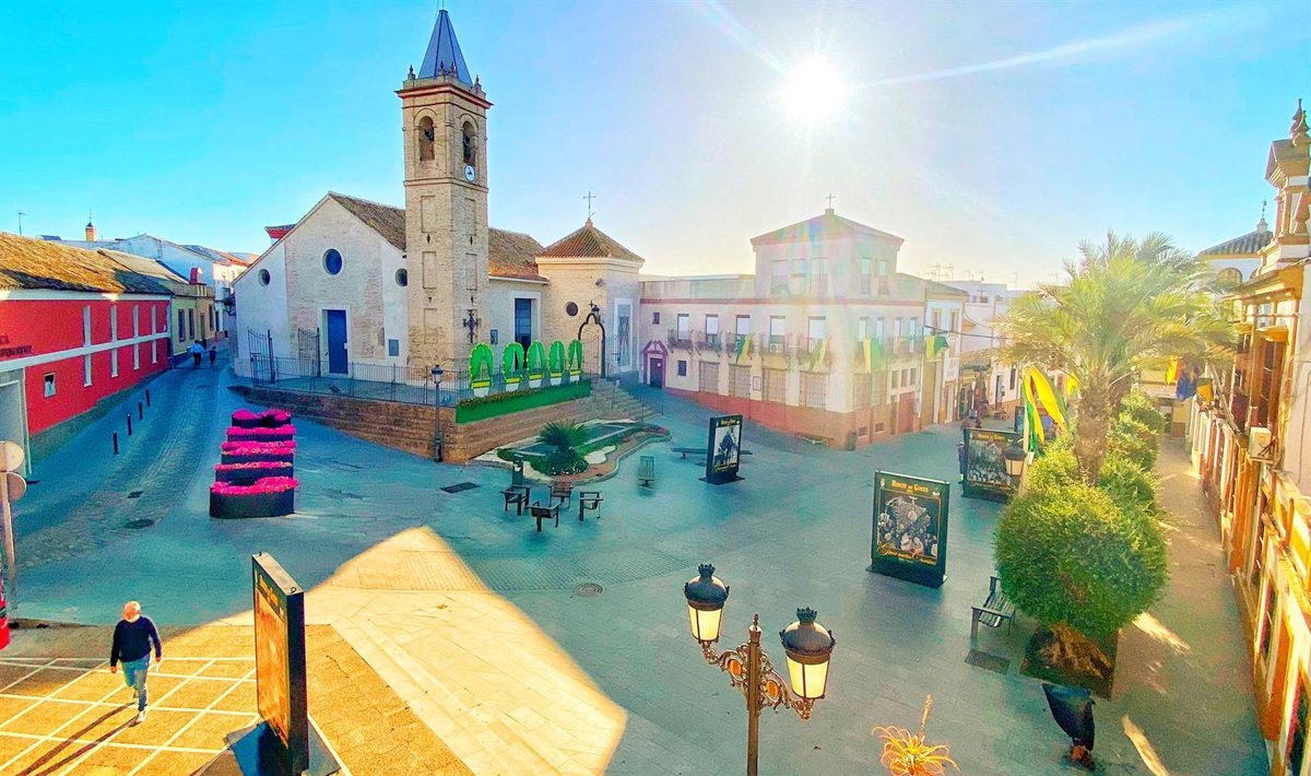 La Plaza de España, engalanada para acoger la Misa de Romeros - AYTO.GINES