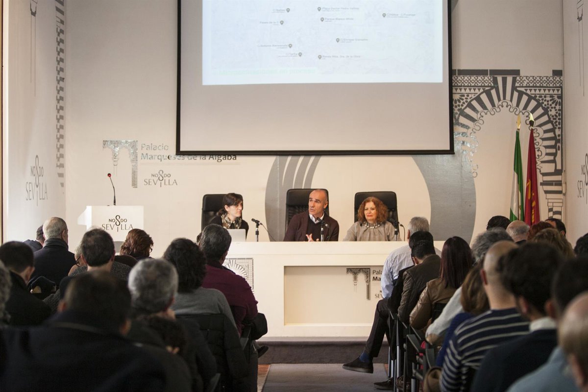 El concejal de Hábitat Urbano, Turismo y Cultura, Antonio Muñoz, y la delegada del distrito Este-Alcosa-Torreblanca, Adela Castaño, en rueda de prensa. - AYUNTAMIENTO DE SEVILLA - Archivo