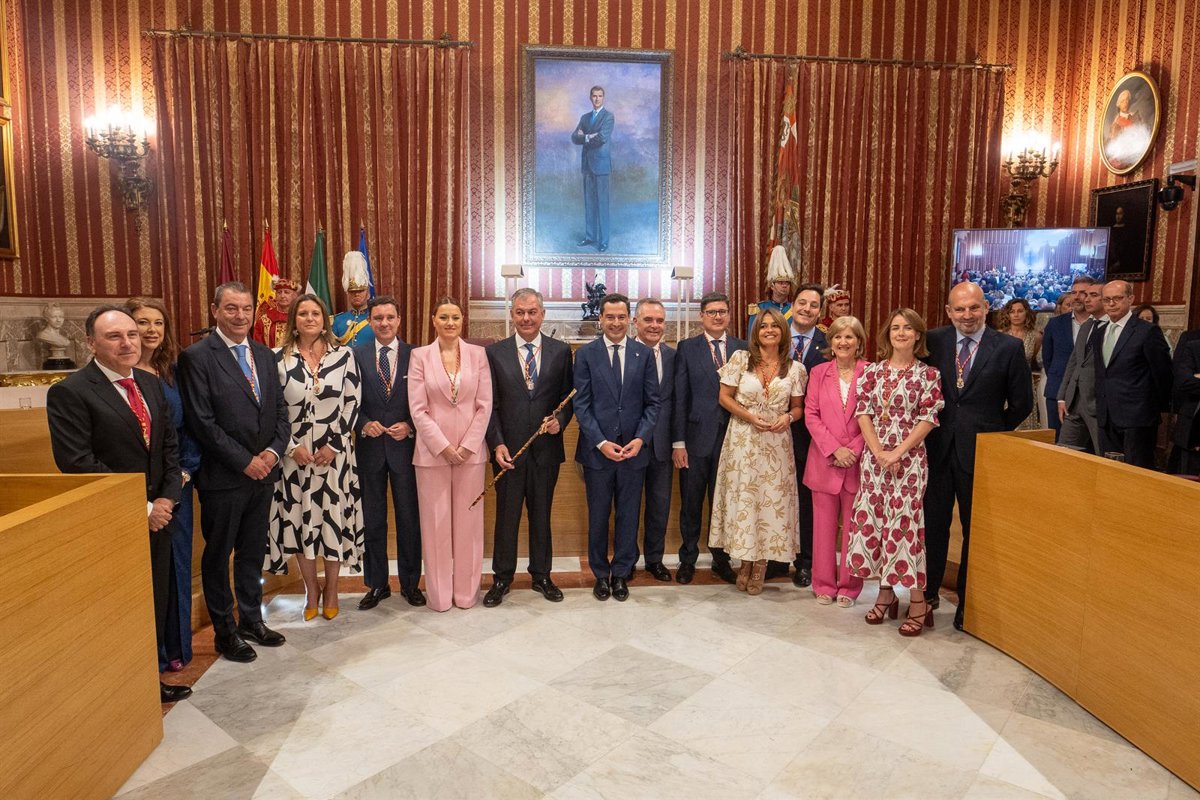 El alcalde de Sevilla, José Luis Sanz, con su equipo de gobierno en el pleno de constitución. - Francisco J. Olmo - Europa Press