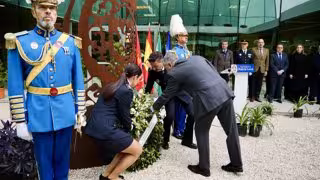 El alcalde de Sevilla, José Luis Sanz, ha participado este viernes en el acto de la ofrenda floral que se ha celebrado esta mañana ante el monumento memorial a los agentes fallecidos en acto de servicio en la sede de la Jefatura de la Policía Local de Sevilla.