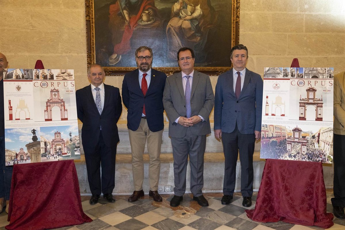El Ayuntamiento de Sevilla ha presentado este lunes el diseño de las portadas que presidirán la Plaza de San Francisco de cara a la próxima festividad del Corpus Christi y que este año estarán dedicadas a las hermandades del Cristo de Burgos, con motivo del 450 aniversario de su imagen titular y por ser la ciudad hermana mayor honoraria de esta cofradía, y a la Pastora de Santa Marina con motivo de los 250 años del Jubileo al Santísimo.