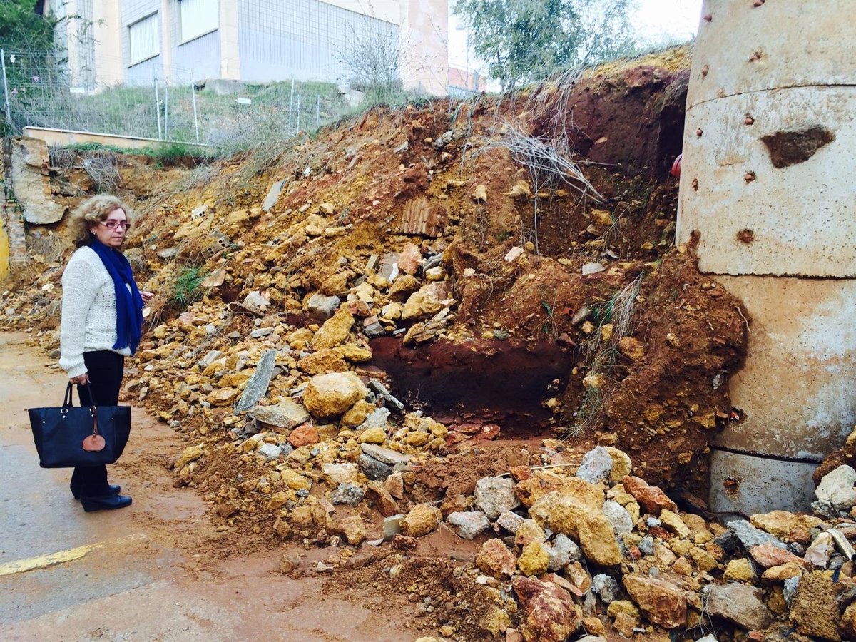 Entre varias de las zonas visitadas, Rodríguez Hornillo ha podido constatar como "el muro de contención de la urbanización Jardín de Alcalá, que se desplomó hace casi un año por efecto de las lluvias, aún no se ha reconstruido por lo que el terreno que contenía está provocando daños en los aparcamientos de las viviendas por su corrimiento".