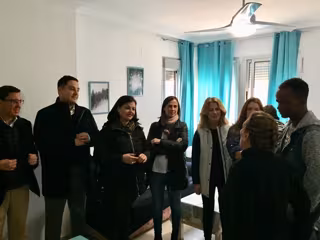 La vicesecretaria de Sociedad del Bienestar PP Andaluz, Ana Mestre, la presidenta del PP de Sevilla, Virginia Pérez, y el vicesecretario del PP sevillano Jose Luis García han visitado esta mañana una vivienda de acogimiento para niños mayores de edad extutelados de la Junta de Andalucía y que gestiona la Asociación de Familias de Acogida y Colaboradoras de Sevilla "Abrázame", que también representa a muchas familias sevillanas que llevan a cabo la labor de acoger a menores.