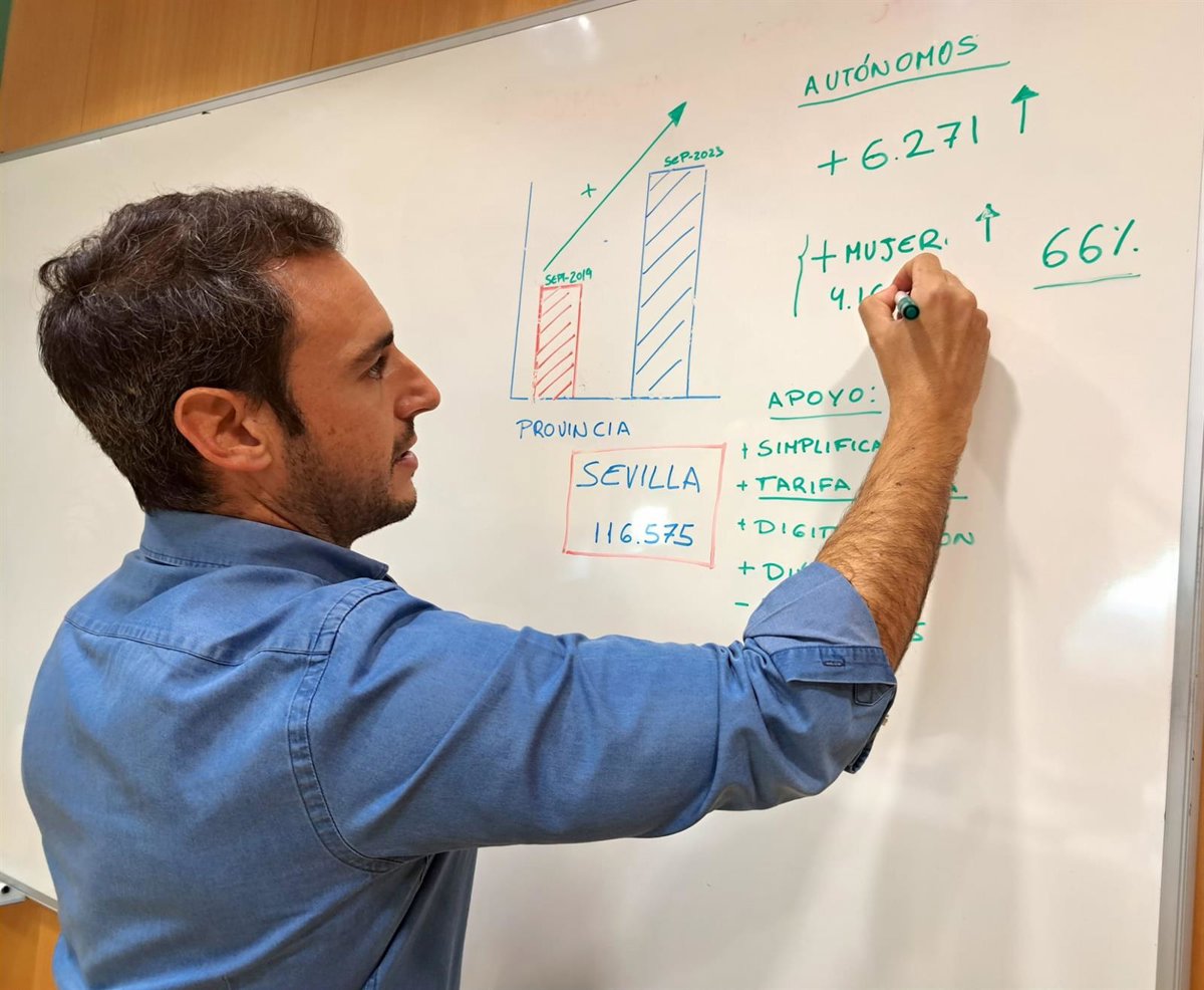 El Partido Popular (PP) de Sevilla ha destacado este viernes que la provincia de Sevilla suma 6.271 autónomos más en los últimos cinco años "gracias a los programas que desde la llegada de Juanma Moreno a la Junta de Andalucía se han puesto en marcha para ayudar, incentivar e impulsar a este colectivo". El vicesecretario de Economía, Hacienda y Empleo del PP de Sevilla, Agustín Aguilera, ha explicado que la provincia ha pasado de contar con 110.303 autónomos en septiembre de 2019 a 116.575 a fecha de septiembre de 2023.