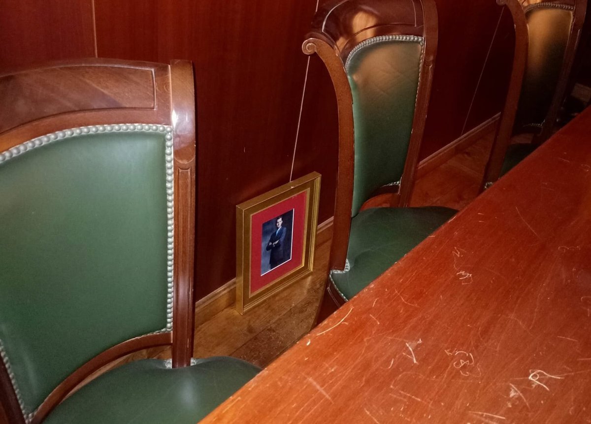 El alcalde ha respondido de su lado que el cuadro de Felipe VI estaba en el suelo del salón de plenos "porque se ha caído recientemente fruto de la rotura del soporte que lo sujetaba", exponiendo que tras el correspondiente arreglo, ya ha sido repuesto. "No ha habido ni una sola sesión celebrada en este espacio sin que el cuadro esté puesto", ha aseverado.