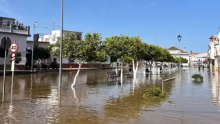 Una de las calles anegadas en el municipio como consecuencia de la rotura de la tubería. - PP SEVILLA