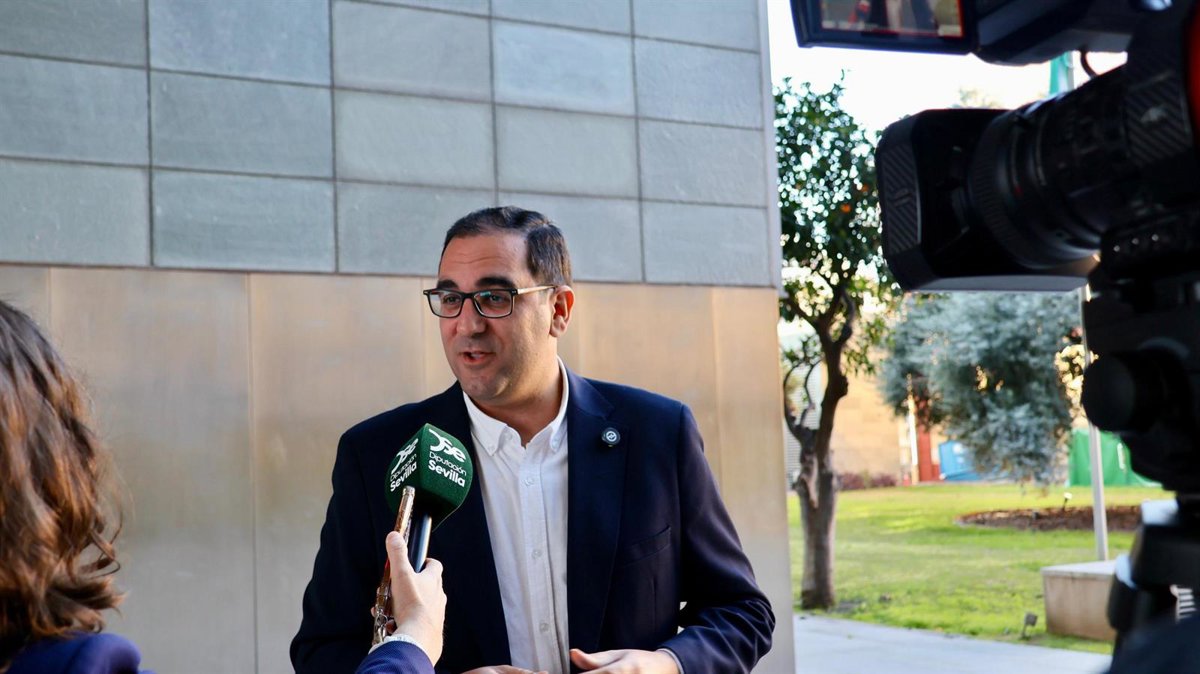 El portavoz del PP de Diputación, Martín Torres, atiende a los medios a las puertas del Salón de Plenos. - PP DE SEVILLA