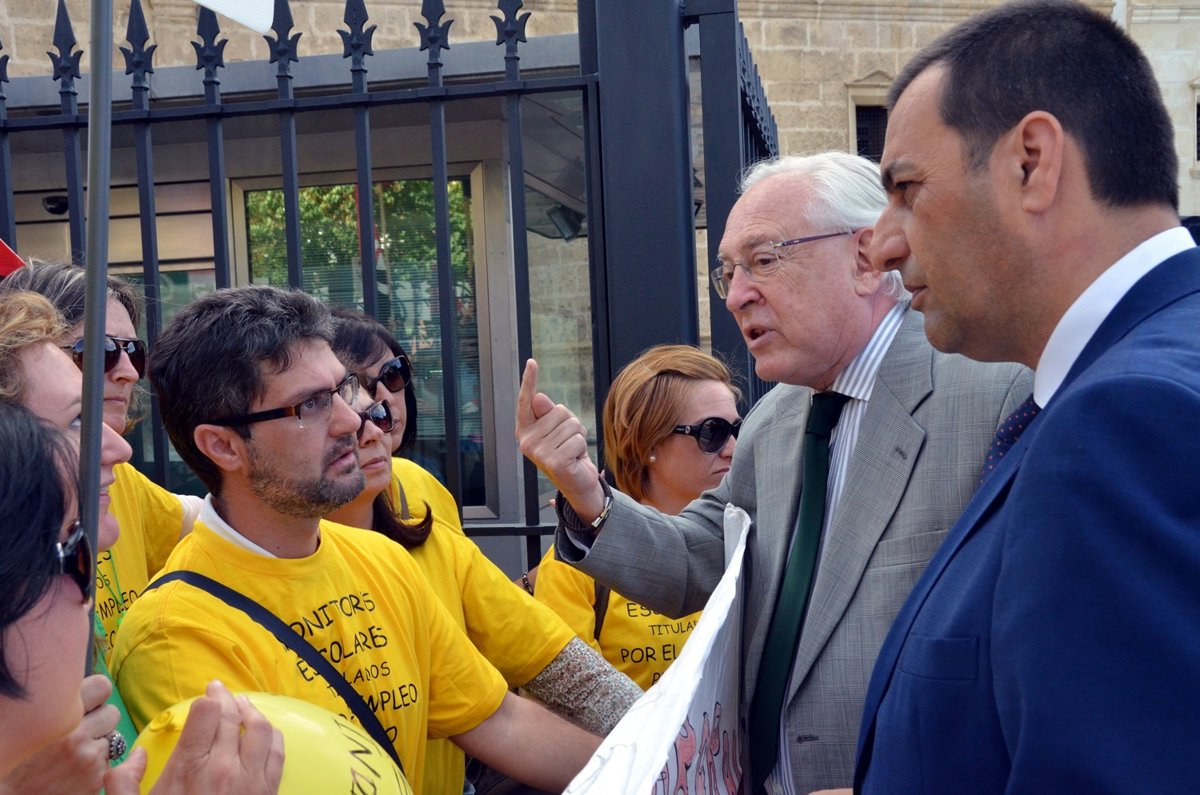 Tras la reunión con la representación de la plataforma, los diputados populares han tenido un encuentro en las inmediaciones de la sede parlamentaria con más de un centenar de monitores despedidos, que se hallaban concentrados ante la cámara andaluza.