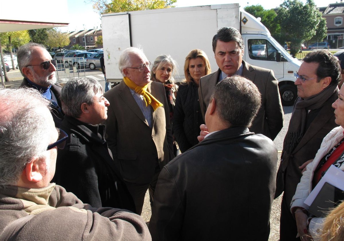 El portavoz del PP andaluz en el Parlamento de Andalucía, Carlos Rojas, y los parlamentarios autonómicos por Sevilla Jaime Raynaud y Patricia del Pozo han visitado este martes Dos Hermanas, comenzando su visita en la glorieta de entrada al conocido núcleo de Montequinto por la autovía A-376 (Sevilla-Utrera).