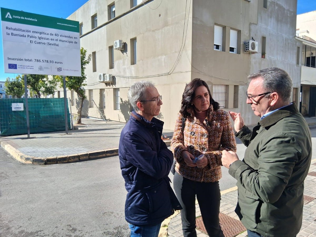 También como ejemplo de estas políticas, Susana Cayuelas ha señalado la actuación que se está desarrollando en El Cuervo, donde se está llevando a cabo la rehabilitación energética integral de 40 viviendas públicas en la barriada Pablo Iglesias, con una inversión de 447.965 euros, destinada a la mejora de envolventes, carpinterías y cubiertas, con un impacto directo en la calidad de vida de los vecinos.