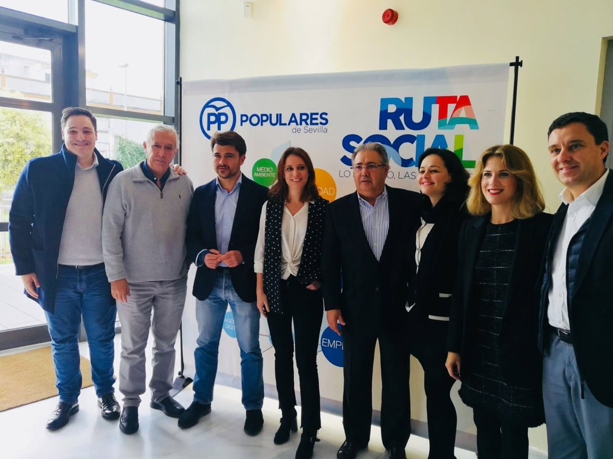 La vicesecretaria de Estudios y Programas del PP, Andrea Levy; la presidenta del PP de Sevilla, Virginia Pérez; el candidato número uno de esta formación al Parlamento de Andalucía por Sevilla, Juan Ignacio Zoido; la vicesecretaria de Sociedad del Bienestar del PP andaluz, Ana Mestre; el vicesecretario del PP de Sevilla, José Luis García, y el portavoz popular en el Ayuntamiento hispalense, Beltrán Pérez, han participado en el acto de entrega de estos premios a un total de ocho entidades y a una revista.