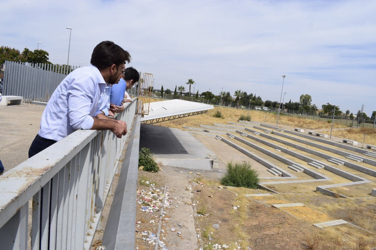El portavoz del Grupo Popular en el Ayuntamiento de Sevilla, Beltrán Pérez, acompañado de concejales de su formación, ha visitado el auditorio del Parque del Higuerón del Sur, "un auténtico despropósito desde que se inició el mandato municipal socialista en 2015", ante lo que ha instado a su rehabilitación.