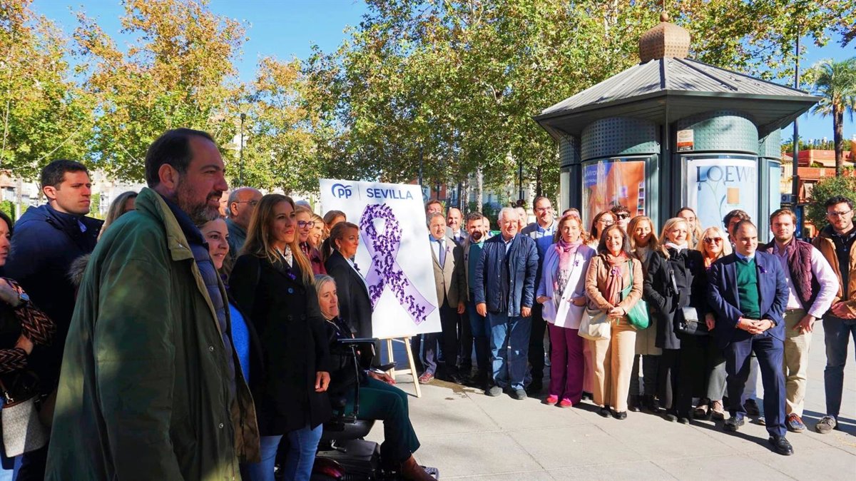 El Partido Popular de Sevilla ha conmemorado este viernes el Día Internacional para la Eliminación de la Violencia contra la Mujer que se celebra este sábado 25 de noviembre con un acto simbólico en el que se ha realizado un reparto de lazos y se ha procedido a la lectura de un manifiesto.