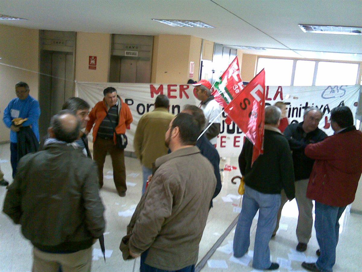 Un total de 34 de los prejubilados del expediente de regulación de empleo (ERE) promovido en 2007 por la sociedad mixta Mercasevilla, participada por el Ayuntamiento hispalense y Mercasa, ha firmado este miércoles las acciones judiciales acordadas para reclamar, ante los tribunales, el cumplimiento de los acuerdos relativos a este procedimiento, pues estos ex trabajadores del mercado central de abastos ven peligrar sus prestaciones al haberse desligado la Consejería de Empleo de la financiación de los 9.046.976,95 euros a los que se eleva el coste de este ERE.