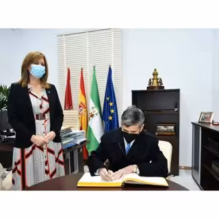 Posteriormente a este recibimiento, en el que también han estado presentes el equipo de gobierno, los miembros de la corporación municipal y la directiva del casino, el presidente del Tribunal Constitucional ha firmado en el libro de honor del Ayuntamiento y la alcaldesa le ha hecho entrega de una réplica de la Colegiata de Osuna.