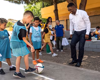 La actividad con Ceferin contó con un colorido recibimiento por parte de monitores y beneficiarios del programa 'Deporte por Refugio', quienes le dieron la bienvenida a los casi 15 invitados e invitadas de la UEFA, UEFA Foundation y de las entidades promotoras del proyecto, donde destacó la presencia de Ivan Rakitic, embajador del organismo hace un año, de Clarence Seedorf, ex futbolista y actual miembro del directorio o Rafael Gordillo, presidente de la Fundación Real Betis Balompié.