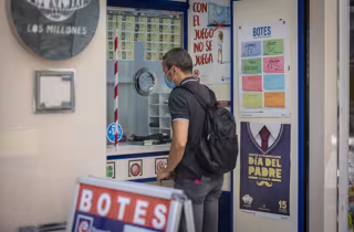 Archivo - Un cliente compra lotería en una administración - María José López - Europa Press - Archivo