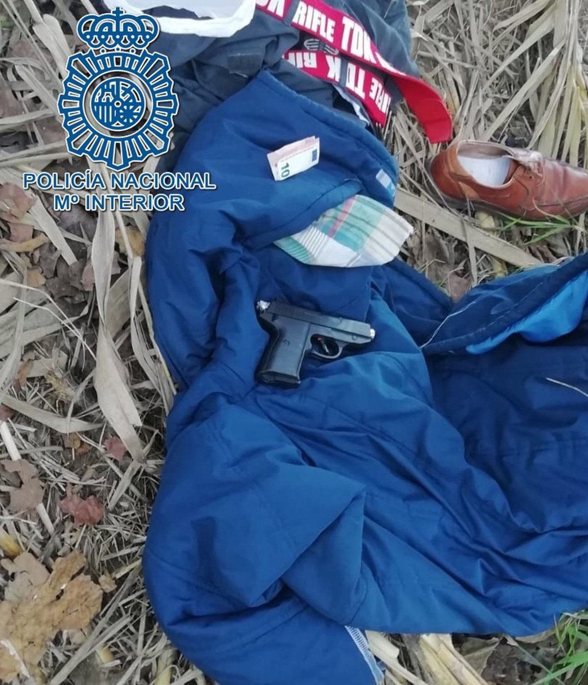 policías localizaron tiradas en el suelo las prendas de ropa que utilizó en el atraco y el arma de fuego, de las que fue desprendiéndose en su huida para evitar ser identificado.