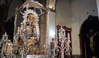 La Virgen de la Hiniesta Gloriosa, en su paso procesional para el traslado a la Plaza de San Francisco, donde preside un altar del Corpus Christi. - HDAD. LA HINIESTA