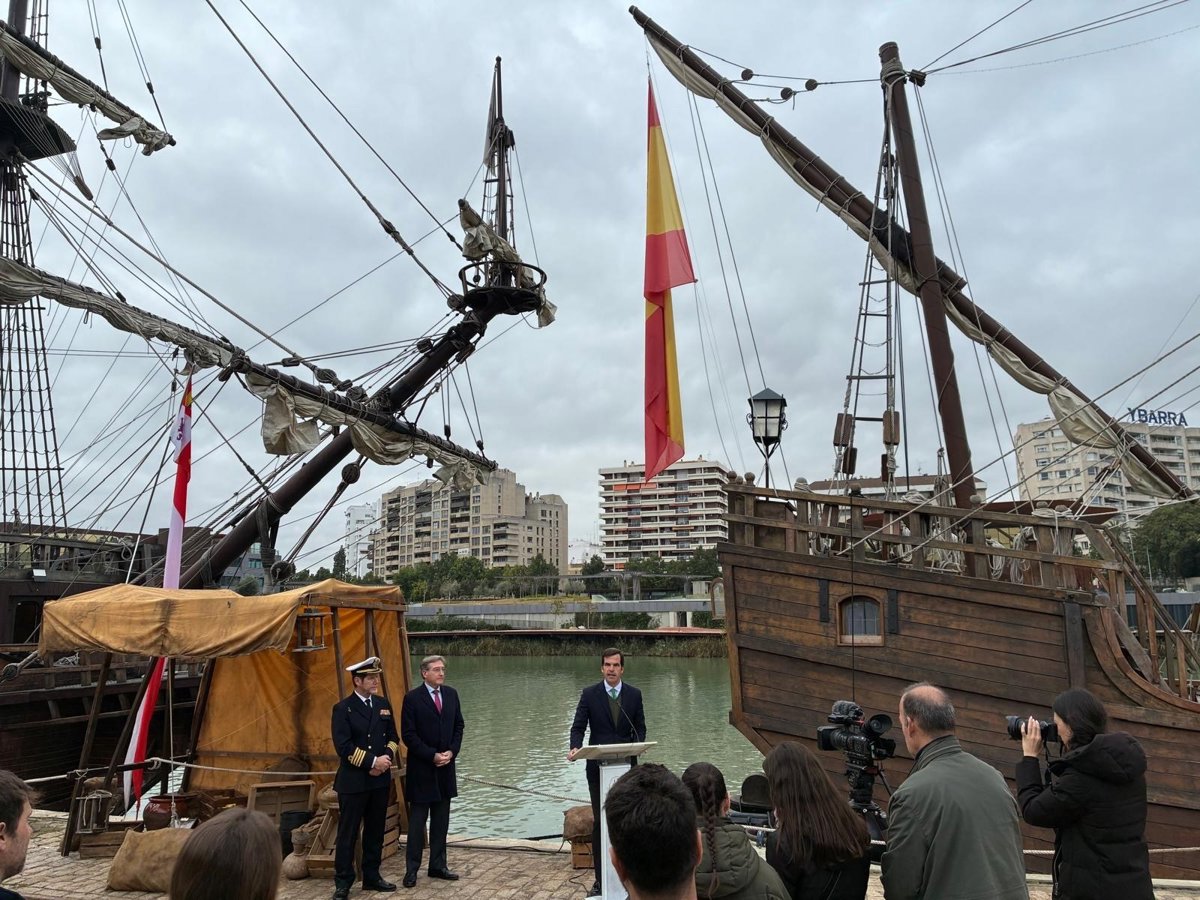 El presidente de la Fundación Nao Victoria, el de la Autoridad Portuaria de Sevilla y el Comandante Naval de Sevilla han inaugurado en la mañana de este lunes, en el Muelle de las Delicias de la ciudad hispalense, el programa 'Navidad de los Exploradores', una iniciativa que permitirá visitar los navíos históricos Galeón Andalucía, Nao Santa María, Nao Victoria 500 y el museo Nao Victoria durante toda la temporada navideña.