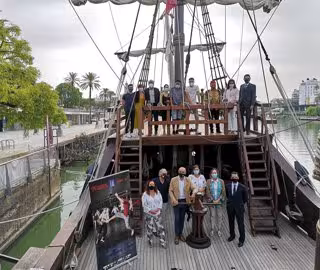 La Nao Victoria y el Espacio I Vuelta al Mundo han acogido la presentación de 'Mundo Magallanes-Elcano', proyecto global de artes escénicas en torno al quinto centenario de la primera circunnavegación a la Tierra impulsado por TNT/Atalaya y con el que colabora el Ayuntamiento de Sevilla a través del Distrito Triana, que subirá a escena los próximos días 2 y 3 de octubre en el Parque Fernando Magallanes.