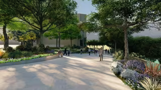 Recreación digital del futuro entorno de Altadis con el tratamiento paisajístico planeado - KKH