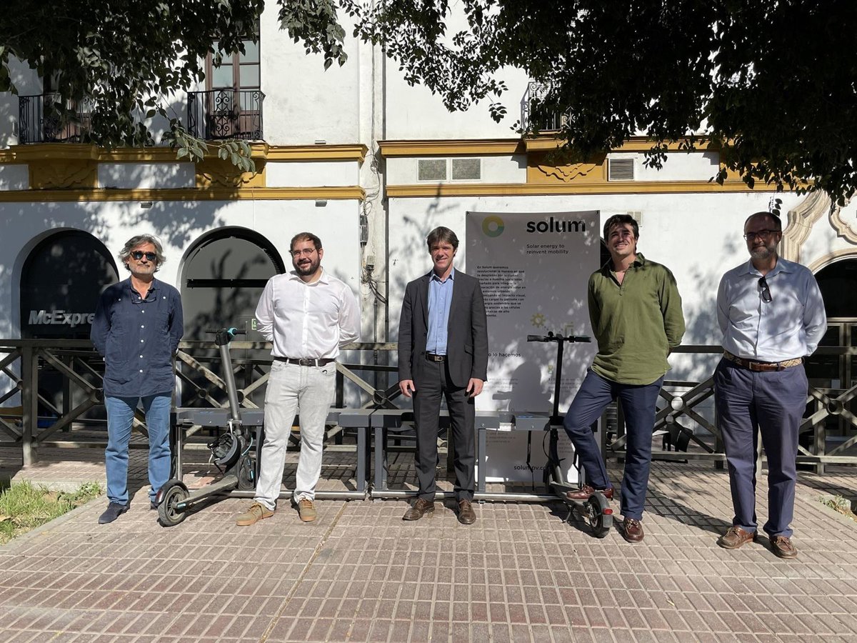 Sevilla cuenta desde este martes con un primer punto de estacionamiento y recarga de patinetes eléctricos privados ubicado en la vía pública y con un modelo sostenible. Se trata de una iniciativa desarrollada en el Paseo del Cristina como proyecto piloto gracias a la colaboración entre la empresa tecnológica andaluza Solum y el