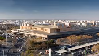 Archivo - Vista aérea de la estación ferroviaria de Santa Justa. - ADIF - Archivo