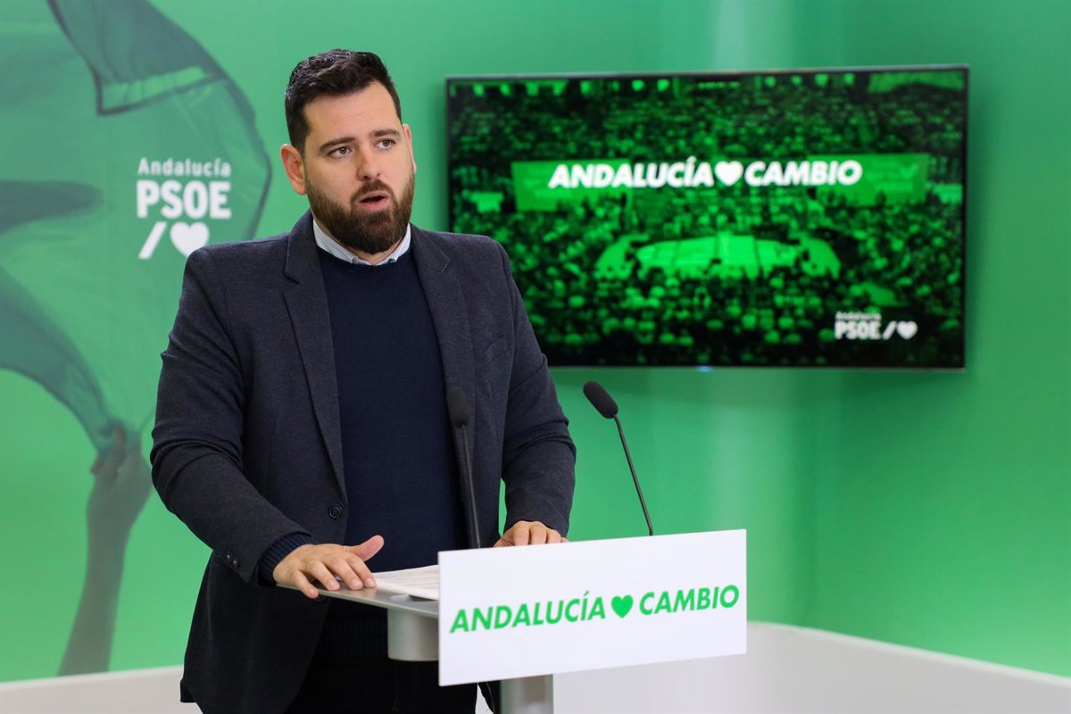 Archivo - El secretario adjunto de Organización del PSOE-A, Alejandro Moyano, en rueda de prensa. (Foto de archivo). - FERNANDO COTO MARÍN/PSOE-A - Archivo