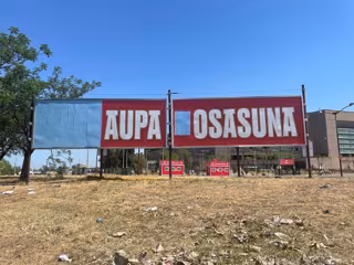 En la segunda de las vallas aparece la palabra Osasuna, en letras blancas sobre fondo rojo, junto a las cuales se dibujan las banderas de Navarra y Euskadi, mientras que en la última de las vallas puede leerse la expresión en letras blancas sobre fondo rojo 'Somos un equipo', y ocupando la parte derecha de la valla, en menor tamaño, se repiten los lemas '¡Orgullo ilusión!' y 'Egingo Dugu', junto al nombre de EH Bildu, según ha descrito el PSOE.