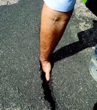 Grieta en la A-477 con anchura suficiente para acoger una mano de canto - PSOE DE GERENA