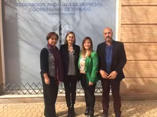 Verónica Pérez y Luz Rodríguez han celebrado este lunes, 'Día por la Igualdad Salarial entre Hombres y Mujeres', un encuentro con mujeres empresarias en la sede de la Asociación de Mujeres Empresarias Cooperativistas de Andalucía (Amecoop).