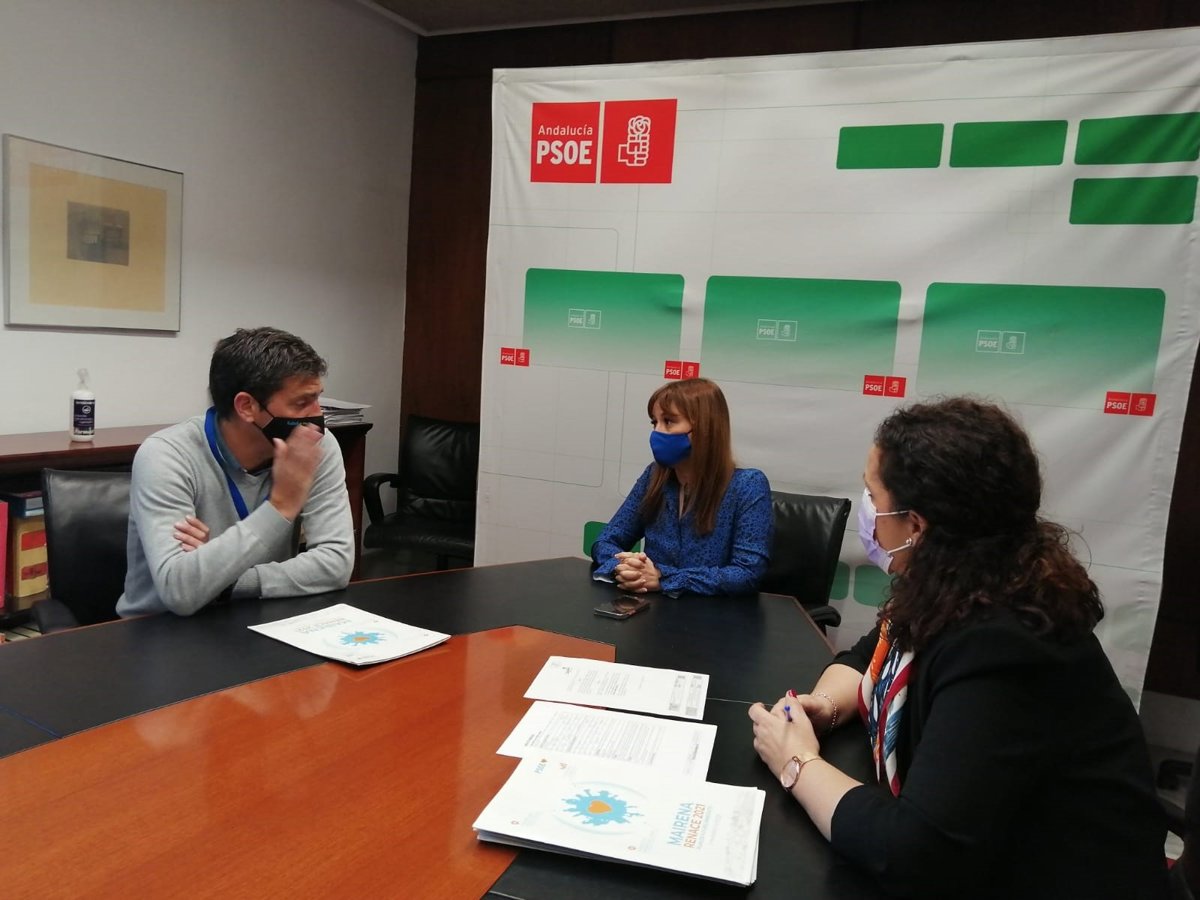 La secretaria general del PSOE de Sevilla y parlamentaria autonómica, Verónica Pérez, se ha reunido en la Cámara andaluza con la portavoz socialista del Ayuntamiento de Mairena del Alcor, Rocío Sutil, y el concejal Pedro Madroñal para abordar el "grave perjuicio para la economía local del pueblo que están provocando las restricciones (sanitarias frente a la pandemia) por el hecho de pertenecer al distrito sanitario Norte cuando la tasa de contagios en el municipio es muy baja".