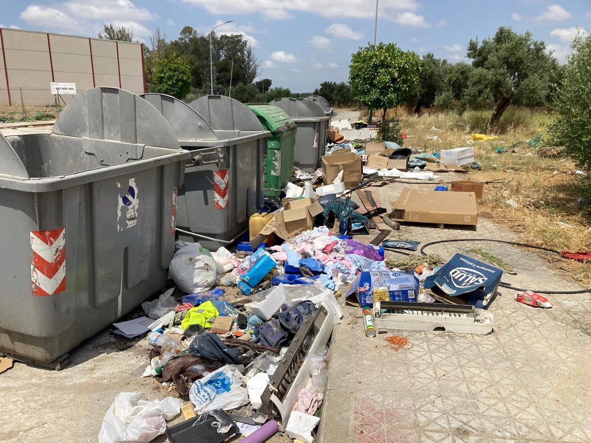 Imagen de contenedores rodeados de basura en Utrera - PSOE