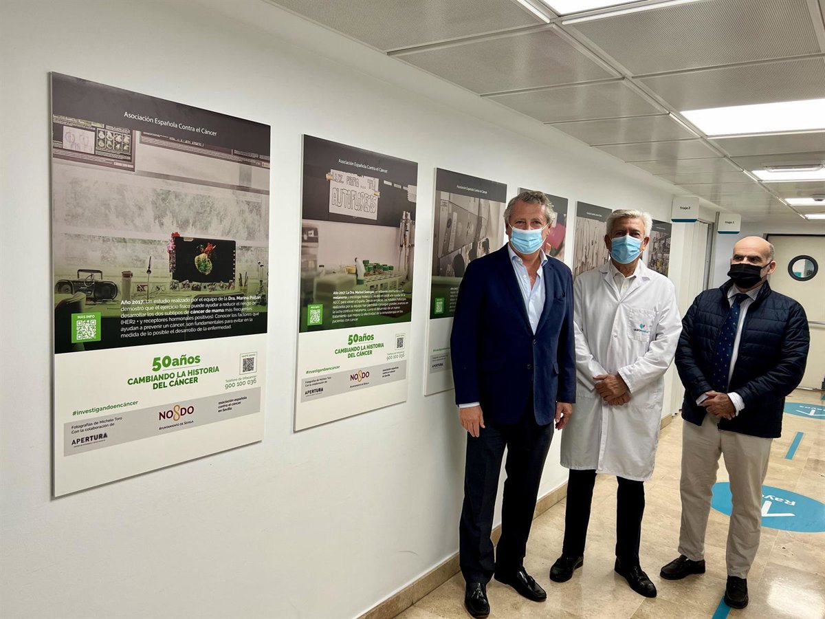 El Hospital Quirónsalud Sagrado Corazón acoge la exposición fotográfica '50 años cambiando la historia del cáncer', organizada por la Asociación Española Contra el Cáncer (AECC), y que tiene como propósito acercar a la sociedad la labor de investigación de la asociación así como poner de relieve la importancia de los profesionales que investigan en la lucha contra el cáncer.