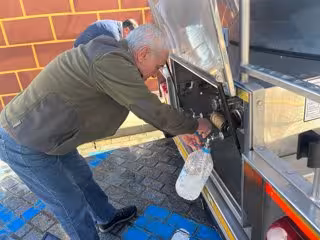 Vecino de El Real de la Jara cogiendo agua del camión cisterna que se ha instalado en el municipio. - EUROPA PRESS TV