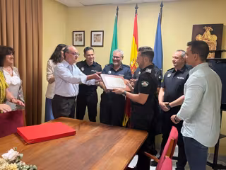 Un vecino de Écija (Sevilla) ha entregado una placa de reconocimiento a cinco agentes de la Policía Local de dicho municipio que salvaron su vida, según informa el Ayuntamiento astigitano.