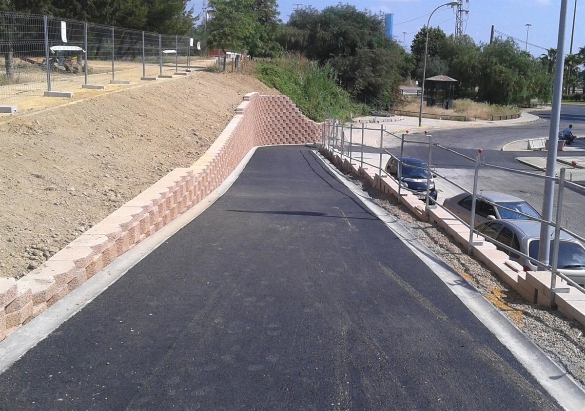 Las obras de la nueva vía ciclista que unirá la estación de Cercanías de Camas con la red urbana de Sevilla ya se encuentran en su "recta final", pues tras finalizar el extendido del aglomerado, la Consejería de Fomento y Vivienda está aplicando el revestimiento de la última capa de color verde. Esta actuación se está desarrollando a lo largo del recorrido, excepto en el camino del Cenizo, el tramo más interurbano que conecta Camas con el puente de Itálica en la SE-30, donde esta semana concluirá el pavimentando el hormigón.