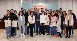 Los diecisiete estudiantes han acudido al rectorado acompañados por la vicerrectora de Servicios Sociales, Campus Saludable, Igualdad y Cooperación, Ana López, la directora del programa, Anabel Moriña, así como los cuatro monitores de este programa formativo. UniDiversUS fue puesto en marcha por la Universidad de Sevilla en 2020, y tiene como objetivo favorecer la inclusión social y laboral de jóvenes con discapacidad intelectual.