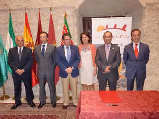 El concejal delegado de Empleo, Economía, Fiestas Mayores y Turismo del Ayuntamiento de Sevilla y presidente de la Red de Cooperación de ciudades de la Ruta de la Plata, Gregorio Serrano, ha firmado este acuerdo con el presidente de la Diputación de Cáceres, Laureano León, el presidente de la Diputación de Badajoz, Valentín Cortés, el vicepresidente de la Diputación de Salamanca, Carlos García, la vicepresidenta de la Diputación de Sevilla, María Dolores Bravo, y los diputados de turismo de las diputaciones de León y Zamora, Miguel Ángel del Egido y José Luis Prieto, respectivamente.