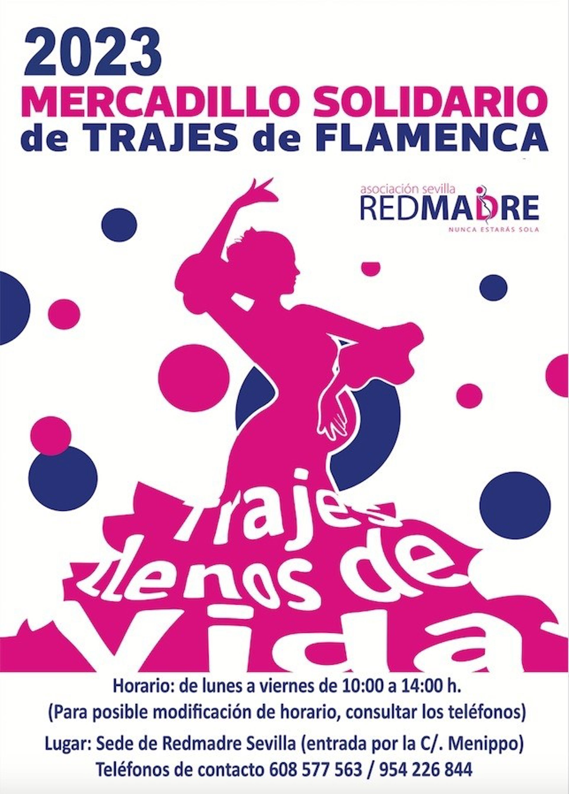La asociación sin ánimo de lucro RedMadre Sevilla ha prolongado su XIV Mercadillo Solidario de Trajes de Flamenca y Complementos tras el "éxito de esta última edición", celebrada del 2 al 5 de marzo, y la demanda de la ciudadanía. Así, más de un centenar de trajes de todas las tallas y complementos de flamenca estarán disponibles en la sede de la asociación sevillana, donde se atenderá al público de lunes a viernes en horario de mañana y algunas tardes, con cita previa.