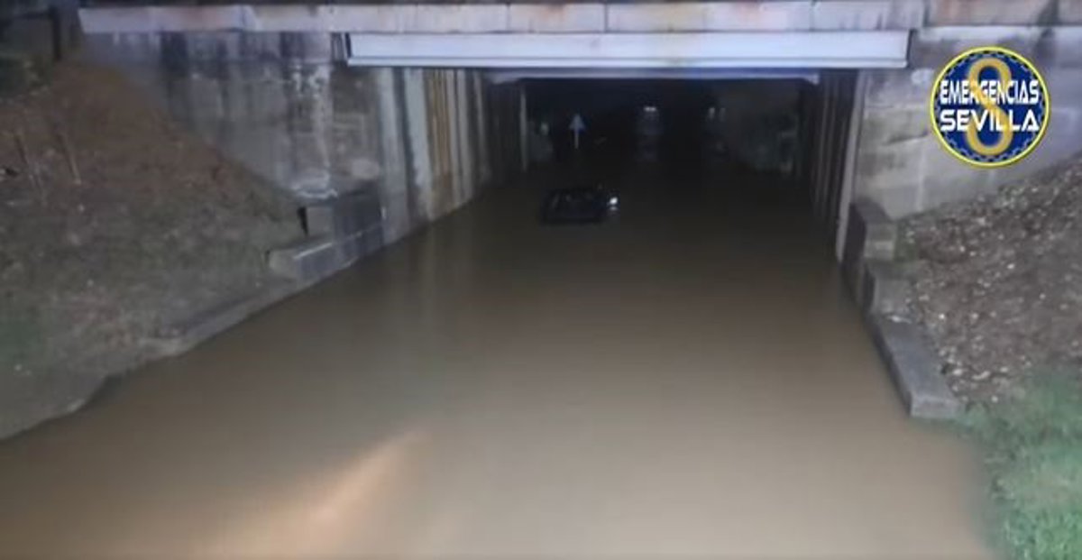 Rescatado en Sevilla un vehículo sumergido en un paso subterráneo en Bellavista - EMERGENCIAS SEVILLA