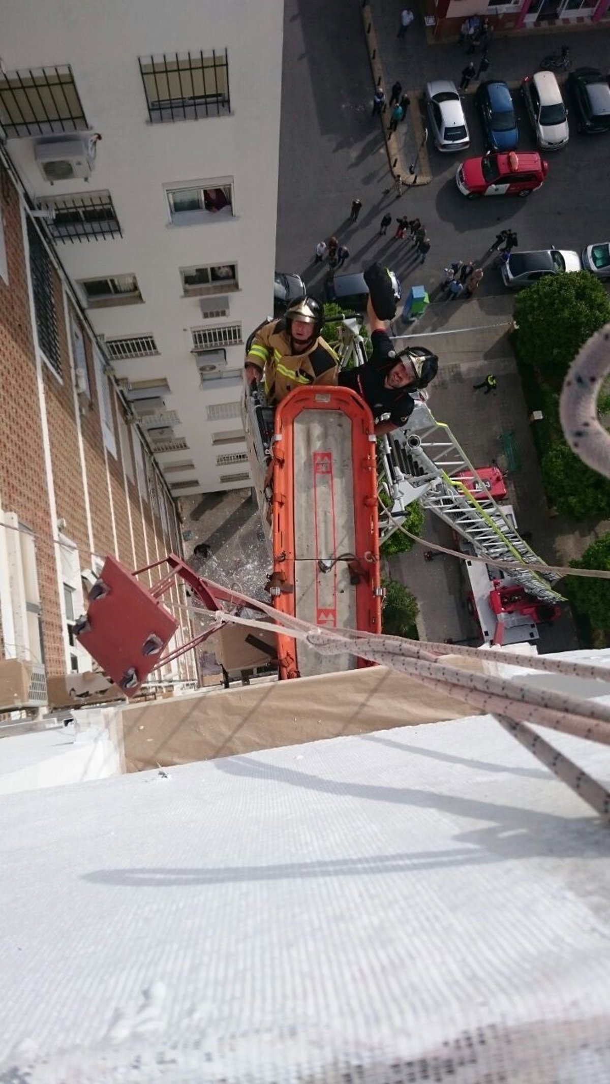 Los hechos han tenido lugar en torno a las 9,15 horas en el núcleo residencial San Diego, cuando varios vecinos han dado aviso de que tres trabajadores habían tenido un problema con el andamiaje desde el que pintaban un bloque y habían quedado descolgados.