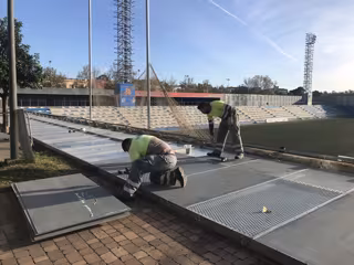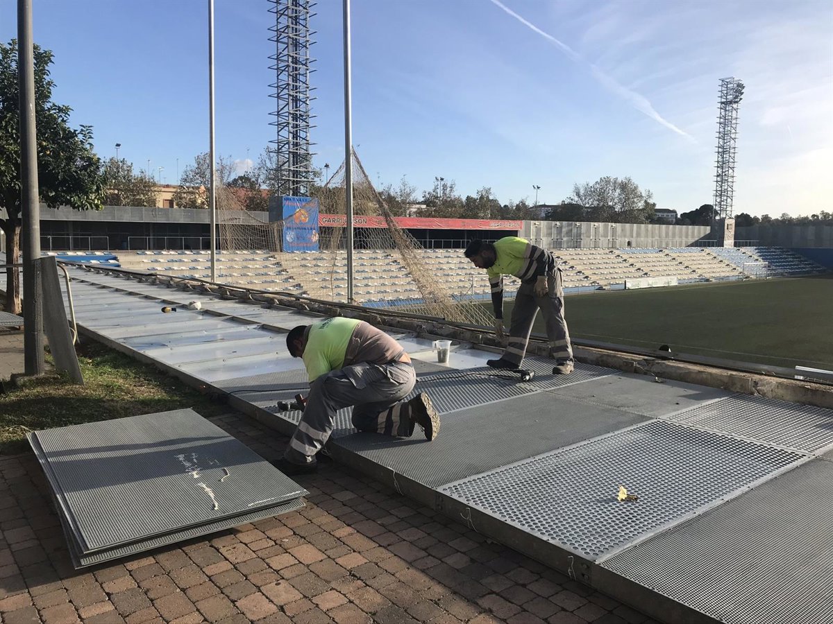 Según ha informado el Ayuntamiento en un comunicado, para ello, se revisa el vallado en pie de todo el estadio, se quitan los elementos opacos y se dejan los de rejilla en las vertientes sur y oeste para evitar así que se vuelva a producir el 'efecto vela' ante una nueva racha de fuerte viento.