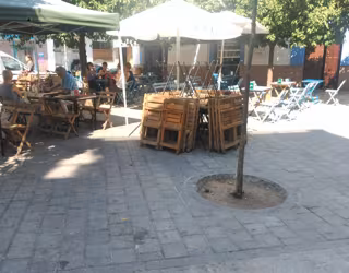 Asimismo, se han eliminado cuatro portamenús, dos parasoles y un barril. Todo el mobiliario sobrante pertenecía a tres establecimientos de los cuatro inspeccionados en la Plaza de los Terceros.