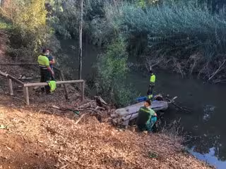 Los árboles de gran porte que se han precipitado sobre la cuenca del Guadaíra, en el municipio de Alcalá de Guadaíra (Sevilla), tras el último temporal de lluvia y viento, tres eucaliptos de unas cuatro toneladas cada uno, se han retirado para una vez saneadas las márgenes y el cauce entre el antiguo Molino de Oromana y la pasarela peatonal a San Juan se lleve a cabo la replantación con especies autóctonas características del bosque de galería.