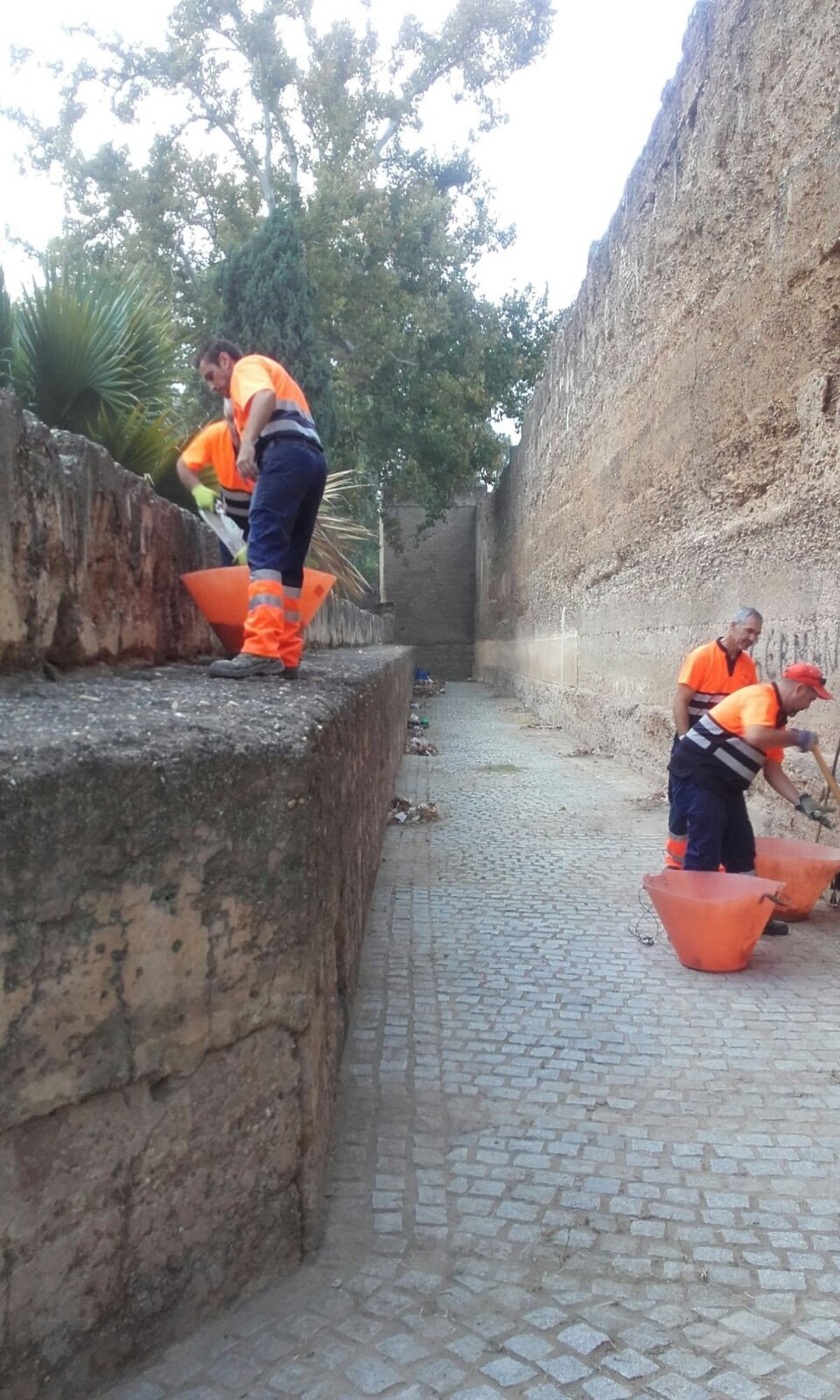 En un comunicado, el Ayuntamiento informa de que esta actuación de Lipasam se ha desarrollado en tres jornadas, con siete brigadas, cinco vehículos ligeros y nueve trabajadores, después de que haya finalizado la actuación contratada por 16.284 euros a la empresa especializada Dédalo Bienes Culturales, para eliminar en 1.002 metros de muralla "diferentes tipos de especies vegetales como palmeras, acebuches, eucaliptos o matorrales, que han venido provocando fisuras, agrietamientos y desplazamientos en el monumento, con el consecuente riesgo de desprendimiento".