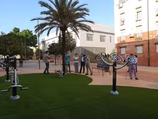 itinerarios peatonales y vehículos de emergencia, mejorando el drenaje, instalando nuevo mobiliario urbano y creando alcorques y parterres con árboles y arbustos.