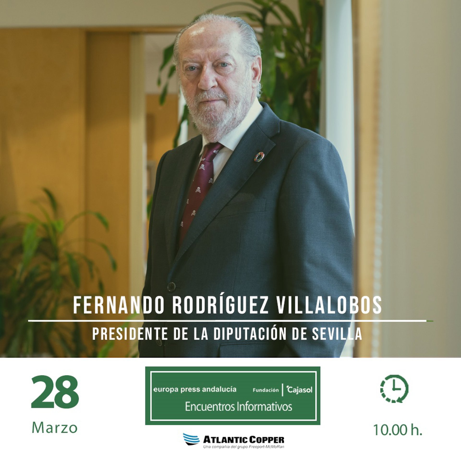 Cartel anunciador del encuentro informativo de Europa Press Andalucía con el presidente de la Diputación de Sevilla, Fernando Rodríguez Villalobos, este martes 28 de marzo en Sevilla - EUROPA PRESS