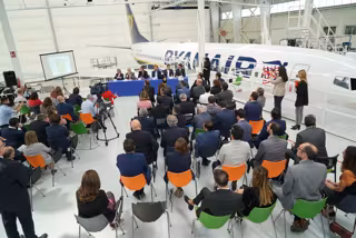 Imagen de la inauguración este jueves del centro de mantenimiento de Ryanair en La Rinconada (Sevilla). - AYUNTAMIENTO DE LA RINCONADA